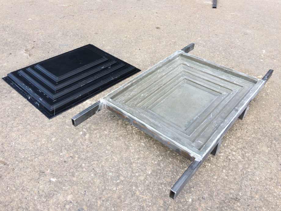 Форма из стеклопластика вставлена в металлический каркас с ручками.