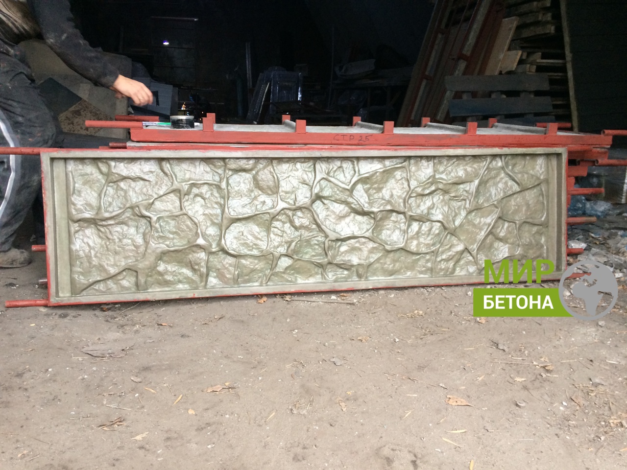 Форма выполнена из стеклопластика и вставлена в металлический каркас.